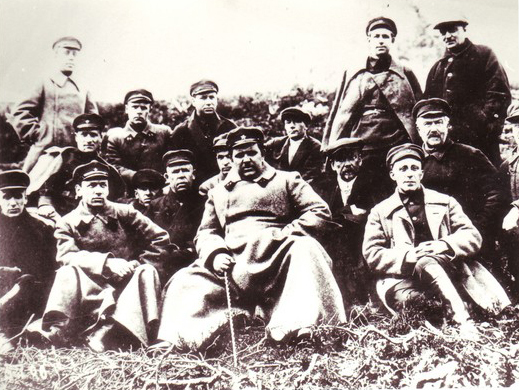 Black and white photograph of a group of the leading and technical officers at 2nd Boeuchastka of Belomorkanal Camp 1932.