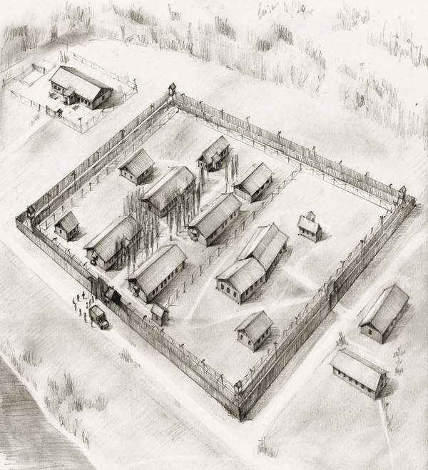 Illustration of camp at what became known as Perm 36 as it appeared from 1954-1972.
