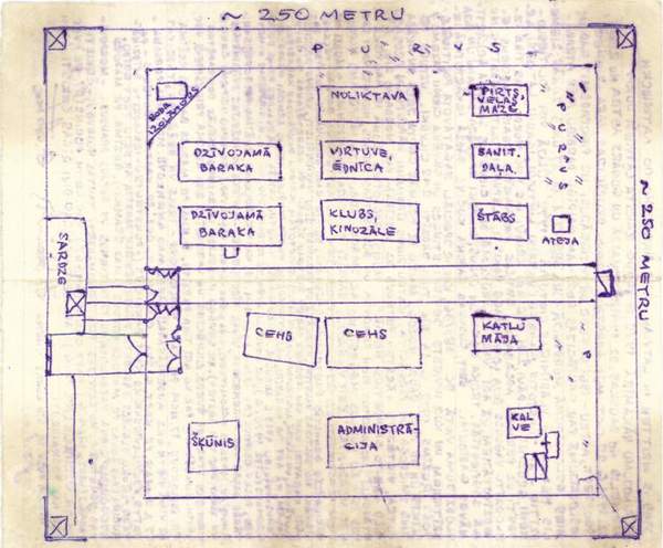 Gunar Astra, "Plan of Perm Camp, Prisoner Drawing." Gulag: Many Days, Many Lives, Item #526 (accessed May 27 2021, 1:13 pm)