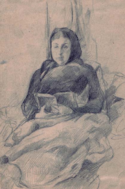 Alla Vasileva's sketch of fellow prisoner Anna Skitmazur reading a book.