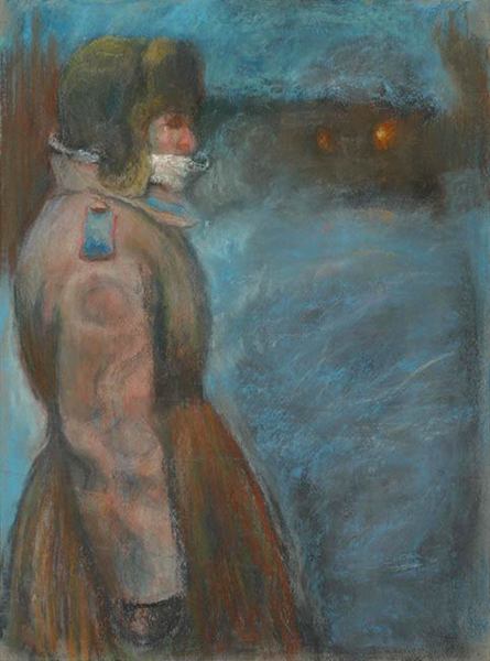Rudakov painting completed while a prisoner in Kotlas, showing a Gulag guard suffering in the cold.