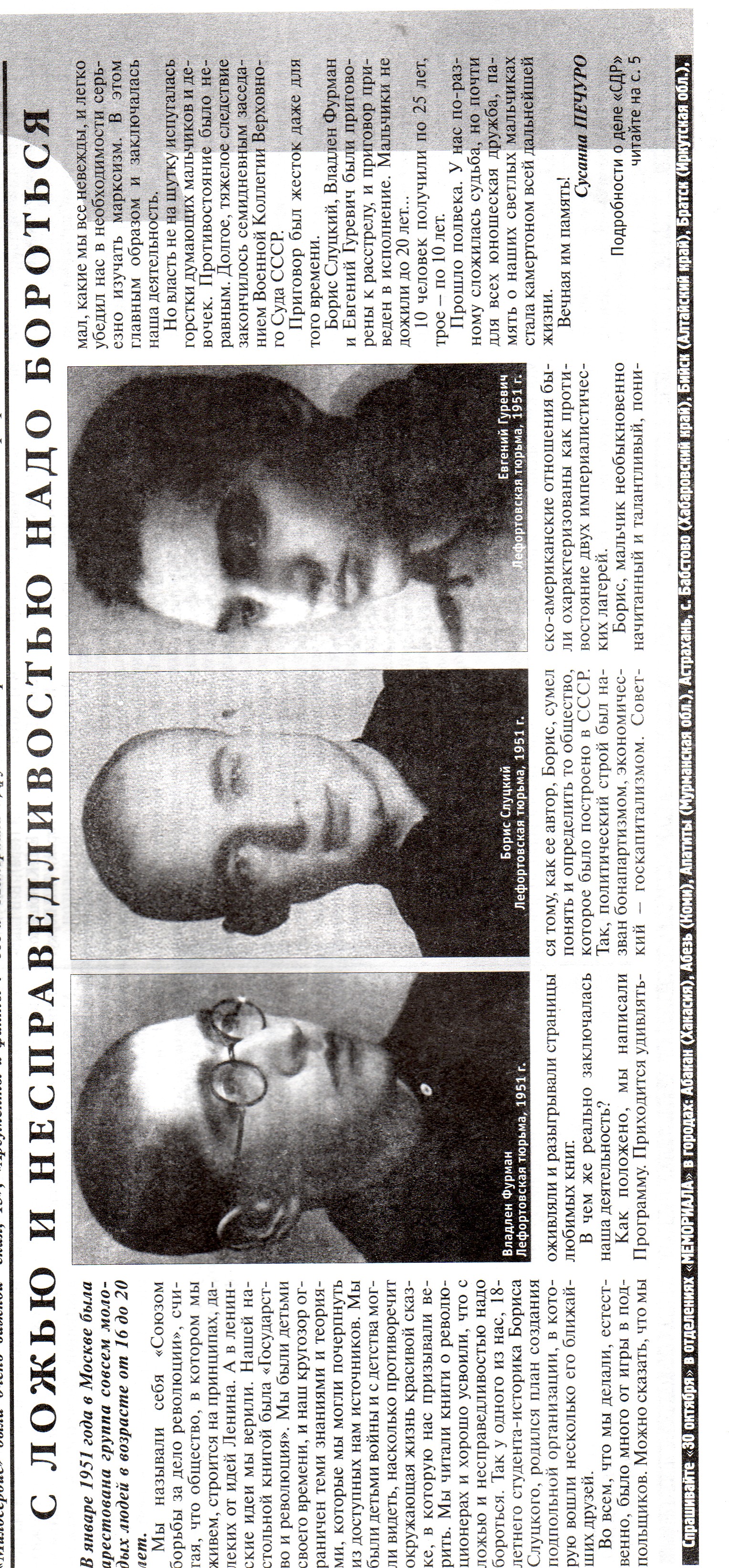 Newspaper article written by Pechuro about youth arrested and executed in 1951.