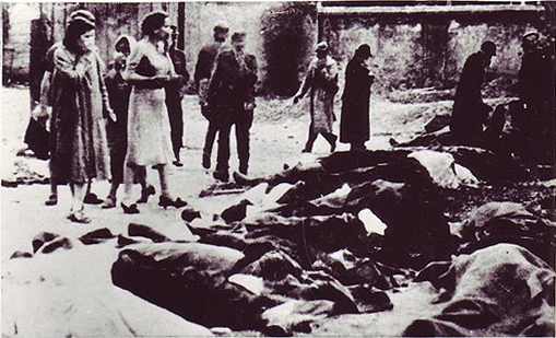 "Prisoners shot on June 26, 1941 in NKVD prison at Lonskii street . L'vov."