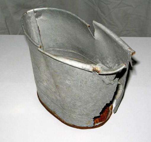 Pot made out of a tin can from a labor camp in Kolyma, 1930s. Such pots were made in the camp workshops by prisoners who exchanged them for food.